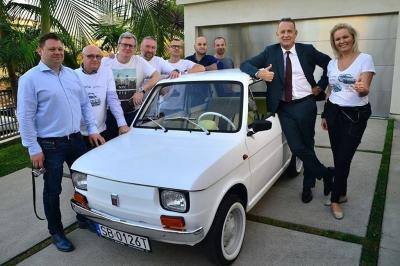 Megérkezett Hollywoodba a Tom Hanks számára felújított Polski Fiat 126p, a színész rögtön ki is próbálta a csöppséget.