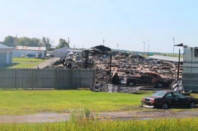A Country Classic Cars nevű kereskedő egyik telephelye lett a lángok martaléka.