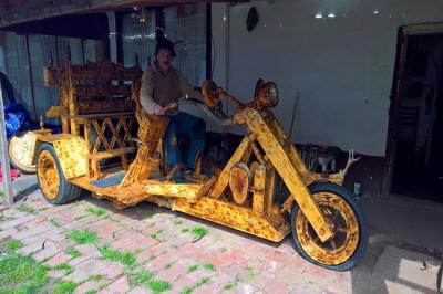 „Vadbika 02” – már a neve is tiszteletet parancsol. Puskás István legújabb fából készült járgánya a korábbiaknál jóval nagyobb, és talán ez a leginkább kidolgozott darab.