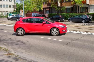 Furcsa látvánnyal szembesültem tegnap a Bécsi úton: egy autó parkolt a város felé haladó belső sáv közepén. Igen, leparkolt a villamossín mellé.