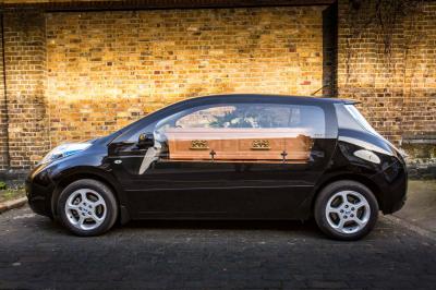 Egy brit temetkezési vállalkozás megrendelésére készült a Nissan Leaf alapján a villanymotoros pompakocsi.