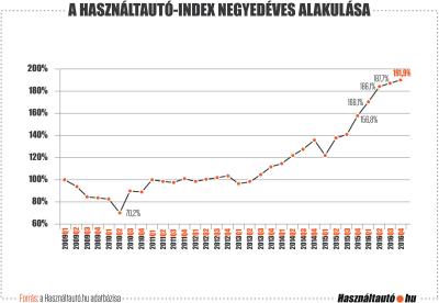 2016 utolsó negyedévében is emelkedni tudott a hazai használtautó-piac állapotát mutató Használtautó-index, az év során mutatott 35 százalékpontos növekedés túlnyomó része azonban még az első félév során következett be. 2016-ban közel 13 százalékkal több autó cserélt gazdát, miközben a kínálati árak mintegy 6 százalékkal emelkedtek.