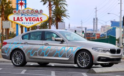 Önvezető BMW 5-ös sorozatot és a jövő, emberi vezetőt nélkülöző autóbelsőjét prezentálta a BMW a Las Vegasi CES kiállításon.