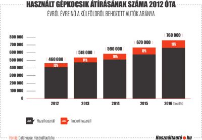 Negyedik éve tart a dinamikus bővülés a hazai használtautó-kereskedelemben. Ennek eredményeképpen a hazai használt személyautók körében 2016-ban várhatóan 615 ezer körüli adásvétel zajlik le, miközben az import használt autók száma elérheti a 143 ezret.