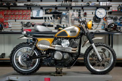 A Faster Sons kampányon belül elkészült legújabb gép a Jeff Palhegyi által készített SCR950-es scrambler.