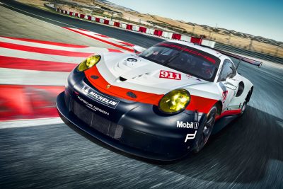 Előrébb költözött a motor a 911 RSR versenyautónál, hogy több helye legyen a diffúzornak.