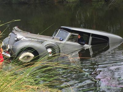 Megnyerte kategóriáját a Hilton Head Concours d’Elegance versenyen az 1938-as Packard 1605-ös, majd belegurult egy tóba és elmerült.