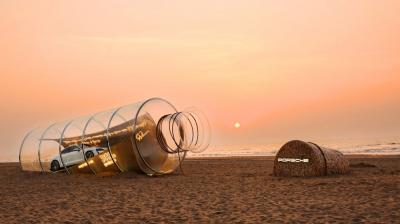A kínai Aranya Színházi Fesztivál kísérőprogramjaként 3 installációt is készített a Porsche a homokos tengerparton.