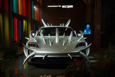 A Porsche által rendezett Scopes művészeti fesztivál stockholmi állomására készült a Taycan Assasin nevű art car.