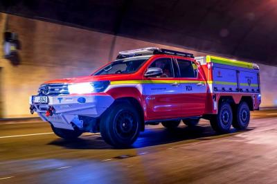 A brit Prospeed által épített 6x6-os Toyota Hilux olyan helyeket is meg tud közelíteni, ahová a hagyományos tűzoltóautók nem tudnak eljutni – például parkolóházakba.