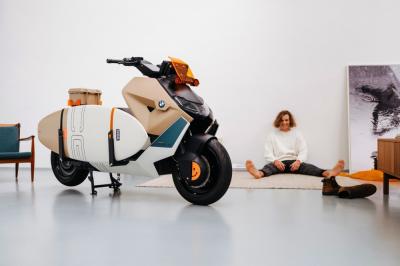 A BMW Motorrad a grazi Vagabund Moto műhellyel karöltve készítette el a BMW CE 04 Vagabund Moto nevű villanyrobogót – passzoló szörfdeszkával együtt.