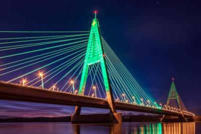 Tavaly az egyik, idén karácsonykor a Megyedi-híd mindkét 100 méter magas pilonját ünnepi kivilágítással látják el.