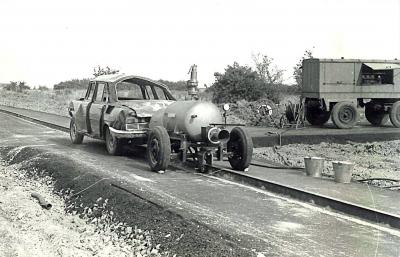 Fél évszázaddal ezelőtt még szabad ég alatt, gőzrakéta-hajtással gyorsítva ütköztették az autókat betonfalnak.