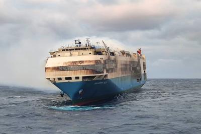 Február 16-án gyulladt ki a 2500 autót szállító teherhajó az Atlanti Óceánon, a 22 fős személyzetet kimentették, a sorsára hagyott hajó még mindig sodródik.