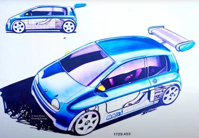 Axel Breun szabadidejében vázolta fel a Ferrari vázra felépített Twingo-t, amely aztán a Renault Clio V6 megépítéséhez vezetett.