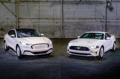 A Mustang Coupé és a Mach-E is elérhető lesz Ice White megjelenési csomaggal; ez az első, közös limitált szériája a Mustang modellcsaládnak.