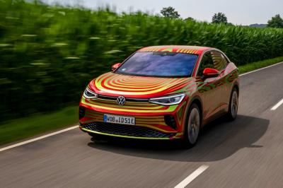 A müncheni IAA autószalonon még csak az itt látható álcázással lesz majd megtekinthető a Volkswagen az ID.5 GTX szabadidő-kupé.