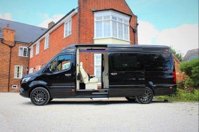 A Clive Sutton nevű luxusautó-kereskedő legújabb átépítése egy 8-9 személyes luxusautó a Mercedes-Benz Sprinter alapján.