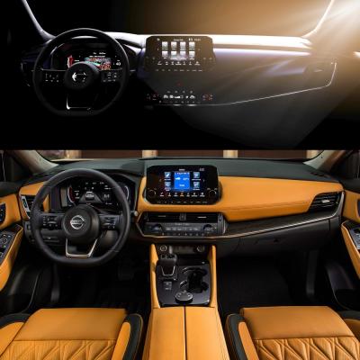 Közreadott pár sejtelmes fényképet az új Qashqai műszerfaláról a gyár, a Rogue-hoz képest csak az utas előtti díszvarrás vonala az eltérés.