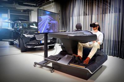 A Volvo fejlesztőrészlegénél az autós szimulátor nem játékra, hanem a biztonsági technológiák fejlesztésére/ellenőrzésére szolgál.