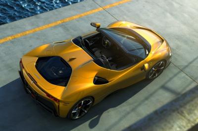 Az SF90 Stradale testvére az SF90 Spider, amely nyitható alumínium tetővel növeli az ezer lóerős rendszerteljesítményű hibrid hajtás által nyújtott élményt.