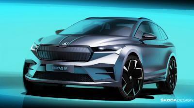 Szeptember 1-jén leplezik le a Škoda Enyaq iV akkumulátoros-elektromos szabadidő-autót, addig is itt vannak a hivatalos vázlatrajzok.