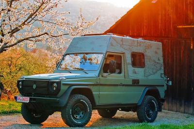 A svájci hadsereg számára készült 1993-ban ez itt látható Puch G-osztály, amelyből igazi expedíciós járművet faragtak a tuningcég munkatársai.