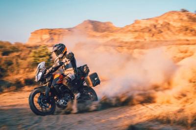 A KTM a legkisebb Adventure modellnél is hű maradt elveihez: a 372 cm3-es blokk dacára a technikai színvonal és a terepképességek is komolyak!