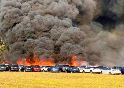 Ismeretlen okból gyulladt ki a használaton kívüli bérautók parkolója, az ott tárolt járművek mintegy fele semmisült meg a tűzben.