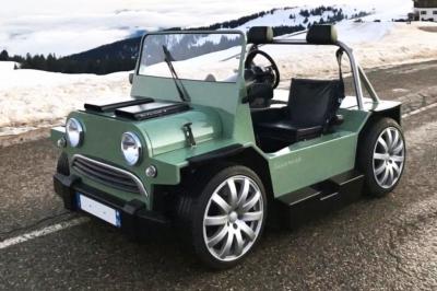 A francia Lazareth műhely rendhagyó járműveinek sorát folytatja a Maserati V8-as motorral ellátott Mini Moke.