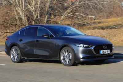 Lépcsős hátú befejezéssel is szemrevaló darab a Mazda3-as, amelyet az alapmotorral teszteltünk.