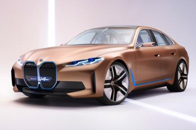 A sorozatgyártáshoz közeli BMW i4 tanulmány orrán debütál a bajorok új márkajelzése, amelynél a peremkarika átlátszó.