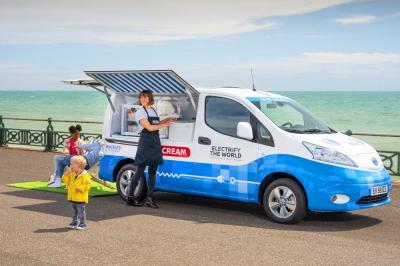 A környezetszennyező, dízelmotoros fagyisautóknak mutat alternatívát a Nissan e-NV200-asból készített jármű.