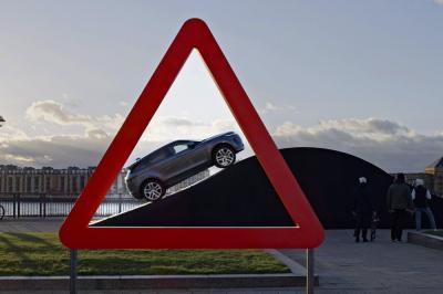 A Range Rover a jól ismert KRESZ-táblák életnagyságú változatát készítette el az új Evoque segítségével.