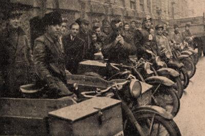 A napilap-terjesztő oldalkocsis motorkerékpárosokról szóló írás először az Autó 1949/7-es számában jelent meg.