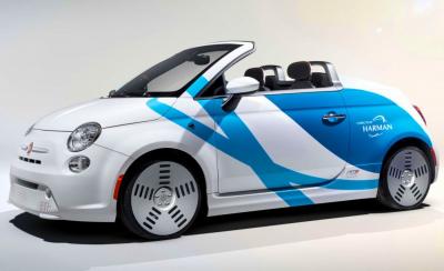 A Harman International legújabb fejlesztéseinek demonstrálására skalpolta meg a Fiat 500e-t.