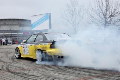 Vasárnap a szlalomozáshoz kitűnő idő, rengeteg élményautózó, motorbőgés, gumifüstölés és sok néző fogadta a Veszprém Aréna parkolójába kilátogatókat.