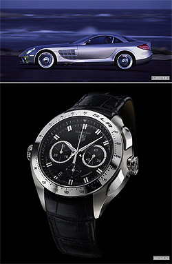 A Mercedes-Benz SLR McLaren azon legendás SLR-versenyautók hagyományát eleveníti fel, amelyekkel 1955-ben sorra nyerték a versenyeket a Mercedes-Benz pilótái, többek között Fangio, Moss, és Kling. Juan Manuel Fangio már akkoriban is TAG Heuer órát hordott. Mikka Häkkinen, aki a Formula-1-be való visszatérését követően világbajnok lett a McLaren-Mercedes színeiben, szintén a TAG Heuer óráit részesíti előnyben pontosságuk és megbízhatóságuk miatt.