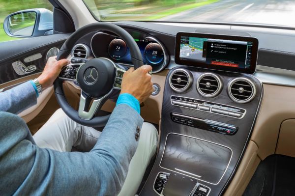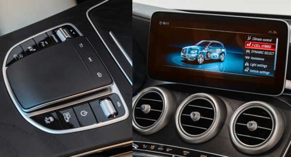 A GLC F-Cell esetén az eddigi 8,4 colos helyett már 10,25 colos, szuperszélesvásznú képernyőt biggyesztettek a középkonzol elé, és új a Comand központi kezelőszerv is. Ez kapott egy érintésérzékeny felületet, aminek segítségével ujjal írva is lehet utasítani a számítógépet, és egy- illetve kétujjas mozdulatokat is felismer. Lecserélték a kormánykereket is, amelynek küllőin az S-osztályban is alkalmazott érintőgombokat látjuk. Szintén fontos változás a benzin- és dízelmotorral szerelt GLC-hez képest, hogy analóg órák helyett egy 12,3 colos képátlójú monitor tájékoztat a kormány mögött – ez minden bizonnyal az extralistán szerepel majd.