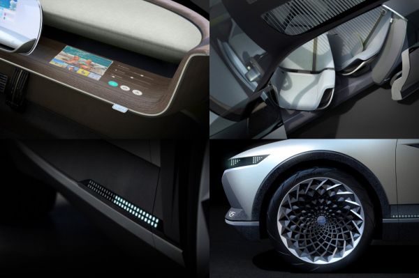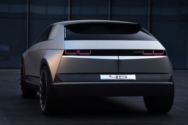 Sok más autógyártóhoz hasonlóan a Hyundai is sötétben tapogatózik, amikor arról van szó, hogy ki kell találni, mire is vágyik majd az autóvásárló pár év múlva, ezért készítették el a múltból merítő, de a jövő technológiájával is gazdagon ellátott kocsit. A név az évszámon kívül még arra utal, hogy az orr és a far is 45°-os szögben meg van döntve, ez olyan jellegzetesség, amelyet a Hyundai márka elektromos autóinál fognak alkalmazni. Arról, hogy a rengeteg LED-ből összeálló, animált első-hátsó lámpák átjutnak-e a sorozatgyártás által jelentett küszöbön, egyelőre nincs információ. Ötletes az ajtók alján elhelyezett LED-sor, amelyen az akkumulátor töltöttségi szintjét láthatja a használó már a beszállás előtt.