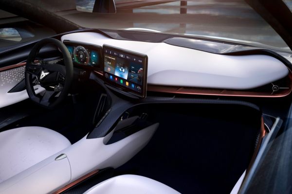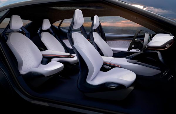 Izzadhattak a formatervezők, hogyan adjanak karakteres formát az elektromos autónak, végül a rémisztő hűtőrács mellett döntöttek, ahol a padlóhoz lecsúszott összekötőre helyezik el a márkajelzést, a LED-es lámpákat összekötő résben pedig a márkanév olvasható. Nagyok az acél- és kicsik az ablakfelületek, jellegzetes a karosszéria teljes szélességét elfoglaló hátsó lámpa a háromszög alakú középső betéttel.