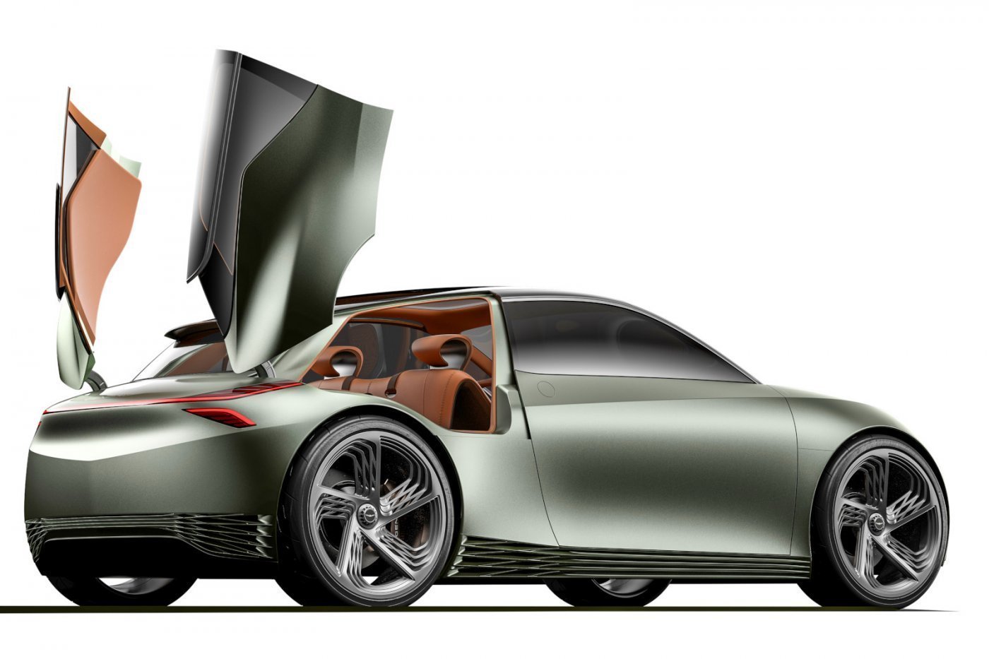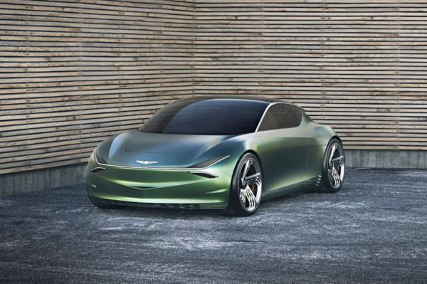 Mivel a Hyundai kínálatán belül már van különleges ajtómegoldással rendelkező kompakt autó – Veloster –, a Genesis prémiummárka formatervezőinek valami újat kellett kitalálniuk. A megoldás az lett, hogy az 1967-71 között kínált De Tomaso Mangusta motorháztetejét idézték meg a csomagtérhez való hozzáférést biztosító két, felfelé nyíló fedéllel. Az elektromos töltő csatlakozója a kocsi orrának közepén, a márkajelzés fölött helyezkedik el, az oldalfal alsó részén lévő légterelő lemezek az akkumulátor hűtését javítják.
