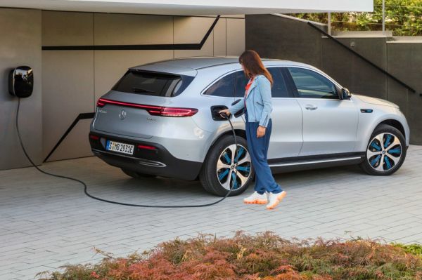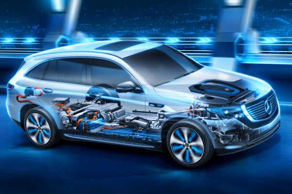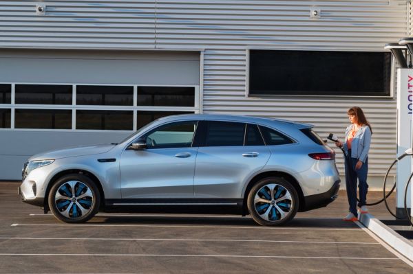 A forma annyiból alakult át az évek során, hogy a monitor helyett mégiscsak hagyományos hűtőrács van a kocsi elején, a korábban csak grafikával összekötött fényszórókat már élesen világító LED-sor kapcsolja össze, miközben megtartották az autó megjelenését barátságossá tevő, a hűtőrácsot alulról körbefogó keretet. Kifejezetten az elektromos modellekhez készítették az EVA nevű építőkészletet, amelynél szabadon változtatható a nyomtáv és a tengelytávolság is annak érdekében, hogy a lehető legnagyobb méretű akkumulátor férjen el a tengelyek között, a padló alatt. Az EQC esetében 80 kWh kapacitással kezdenek, de a mérnökök szerint belátható időn belül 110 kWh-t is elérik majd.