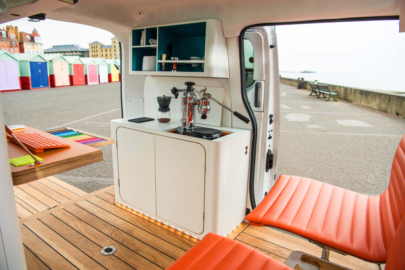 A Nissan a Studio Hardie műhelyt bízta meg azzal, hogy a villanymotoros e-NV200-as haszonjárműből mobil munkahelyet varázsoljon. Alapvetően irodáról van szó, nagy méretű íróasztallal, érintőképernyős számítógéppel, kütyüről vezérelhető LED-es világítással, mini hűtővel és profi kávégéppel.