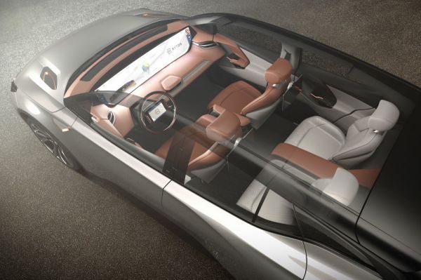 Hogy pontosan mire is gondol ez a fejlesztőgárda, azt a CES kiállításon bemutatott szabadidő-autó prototípus mintázza. Kristályszerűen kialakított LED-es lámpák, európai szemnek is kellemes látványt nyújtó vonalvezetés jellemzi a megjelenést – a sorozatgyártás 2019-es megindulásakor egyterű karosszéria is választható lesz –, az utastér legkülönlegesebb része pedig a műszerfalat kiváltó, 124 centi széles és 25,4 centi magas képernyő. A tanulmány esetén a kormány közepére került egy kisebb érintőképernyő, azonban erről le kell majd mondani a sorozatgyártású változatnál – kérdés, mivel lehet majd vezérelni a hatalmas kijelzőt, és magát az autót?