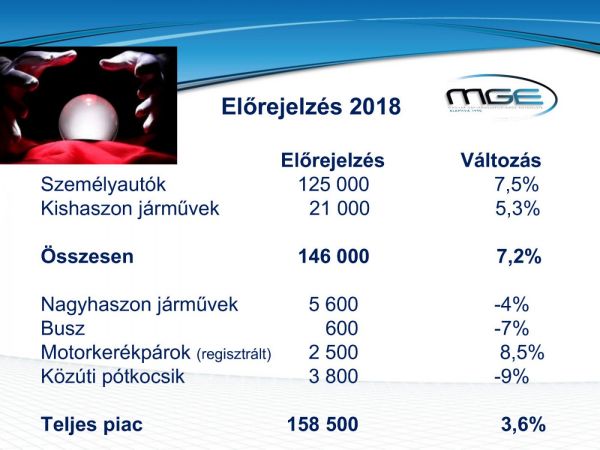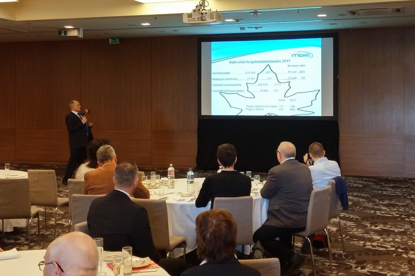 Tovább folytatódott a növekedés a hazai újautó-piacon, amellyel kapcsolatban a darabszámok mellett azt emelte ki Erdélyi Péter, a Magyar Gépjárműimportőrök Egyesületének elnöke, hogy hajszálnyival ugyan, de 60 % alá csökkent a céges vásárlások aránya, ami arra utal, hogy a magánvásárlók is kezdenek visszatérni a kereskedésekbe. Az eladások további növekedését várják az idén is, az elektromos autózás szerepének növekedését jelzi, hogy külön előadást tartott Dr. Ugron Gáspár Gábor, az e-mobi kft. ügyvezetője.