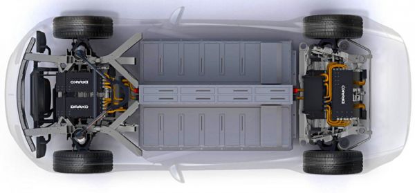 Még 2012-ben ment csődbe a Fisker Motors, amely a Karma nevű hatótávnövelős elektromos autót gyártotta – amely Karma Revero néven újra megvásárolható felfrissített formában –, ekkor szerzett néhány karosszériát a Drako Motors, amely alapján aztán kifejlesztették saját elektromos luxuslimuzinjukat. Megszabadultak a 2,0 literes turbómotortól, helyette előre is villanymotorok kerültek, az utastér alá pedig 90 kWh kapacitású akkumulátort szerelnek.