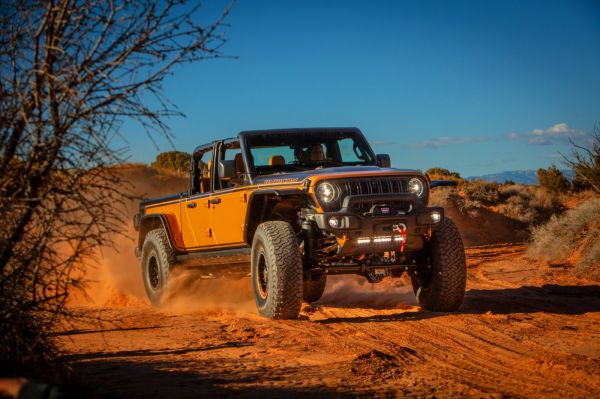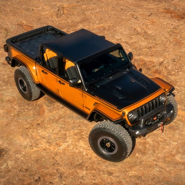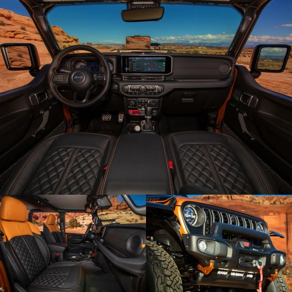 A Jeep Performance Parts by Mopar hivatalos gyári tartozékokért felelős csapat építette ezt a pickupot, Ginger Snap metálfényezéssel és retró-grafikával. A 40×13.5R18 BFGoodrich All-Terrain T/A KO3 abroncsokat 18 col átmérőjű, 9 col széles KMC Grenade Crawl beadlock felnikre szerelik, egyediek a sárvédők, hogy bőven legyen helye az abroncsoknak. Dana 60-as hidakat (5.38-as áttétel) szereltek a gyáriak helyére, AccuAir légrugózás segítségével tudja a sofőr szabályozni a hasmagasságot.