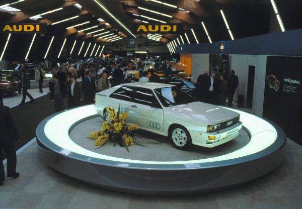 1980 tavaszán, a Genfi Autószalonon debütált a sorozatgyártású Audi Quattro, hosszában beépített öthengeres turbómotorral (200 LE). Az állandó összkerékhajtású modellt eredetileg kis darabszámban gyártandó különlegességnek tervezték, de végül a kínálat fontos része lett és számos változtatással egészen 1991-ig a kínálatban tartották. A csúcsot az 1984-ben bemutatott, rövid tengelytávú Sport Quattro jelentette 306 lóerővel. 1986-ban a 80-as sorozatban is megjelent a 4×4-es hajtás Torsen-differenciálművel.