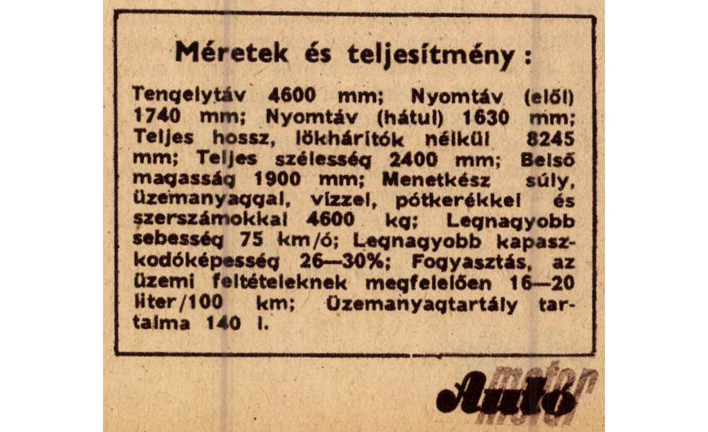 Az új autóbuszba a Csepel Autógyár négyhengeres Diesel-motorja kerül beépítésre, melyet az „Autó” múltévi műjus 1-i számaiban részletesen ismertettünk. A kocsiszekrény váza préselt acélidomokból készül, elektromos hegesztéssel. Ez a korszerű építésmód különlegesen alacsony önsúly mellett a legjobb helykihasználást engedi meg. Az egész vázszerkezet – kívülről és belülről – könnyűfémlemezek borítják. A hűtőmaszk könnyen levehető, a szánkóra szerelt motor, a váltóművel, s a hűtővel együtt, előre kihúzható, s ily módon a motor egy munkaóra alatt ki- vagy beépíthető. A 4 mm vastag Ninoleummal, vagy gumival borított acéllemez-padló az önhordó felépítménynek egyik szerkezeti eleme.
